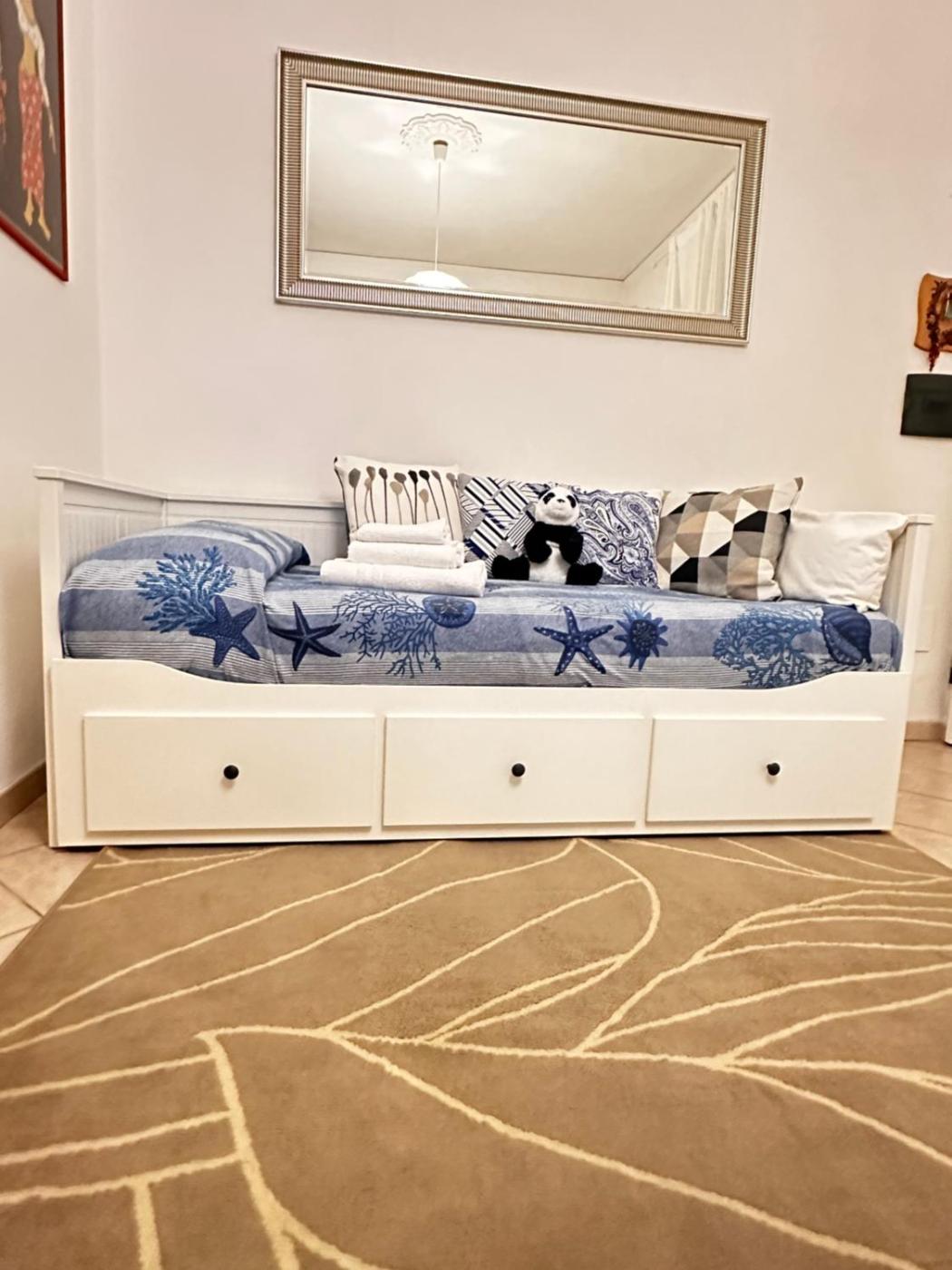 Questo appartamento comprende 1 camera da letto, un soggiorno, una cucina con utensili, frigorifero e macchina da caffè, e 1 bagno con bidet e doccia. Presso questo appartamento troverete asciugamani e lenzuola in dotazione.
