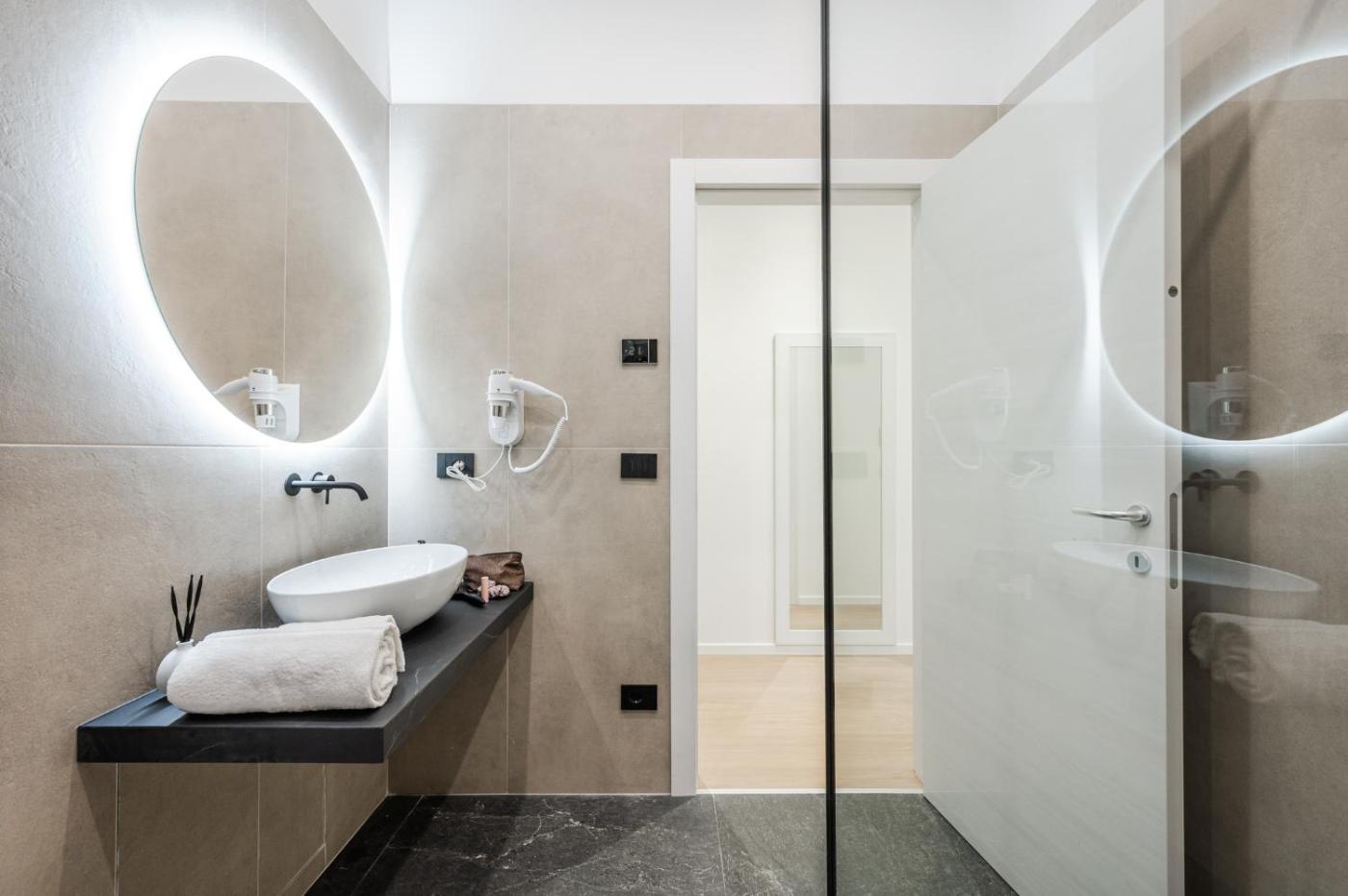 Appartamento Deluxe con 1 Camera da Letto. Boasting a private entrance, this air-conditioned apartment includes a kitchen, 1 bedroom and 1 bathroom with a walk-in shower and a bath. The apartments kitchen, which has a refrigerator and a microwave, is available for cooking and storing food. The apartment offers a tea and coffee maker, a dining area, parquet floors, a flat-screen TV, as well as city views. The unit has 1 bed. ;
